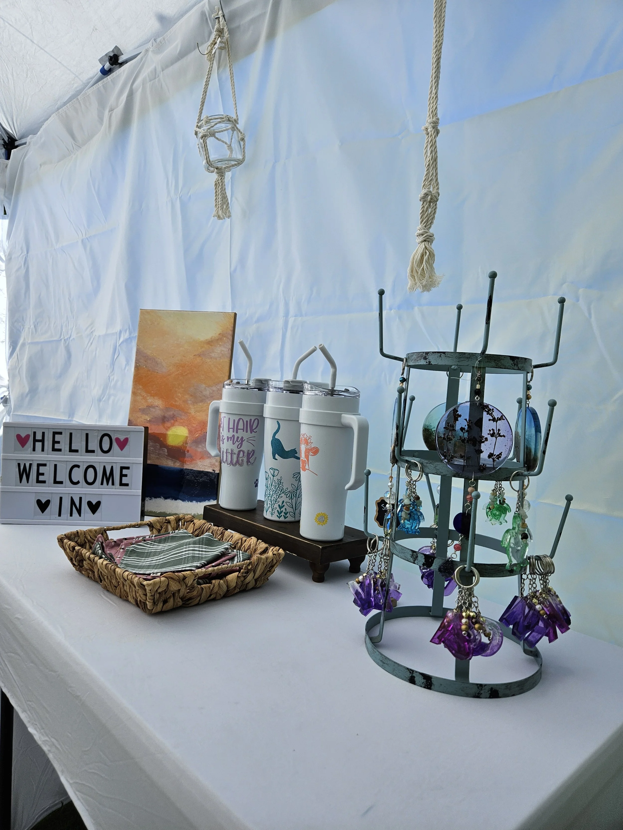 Pet tags, dog bandanas, quilts, jewelry, resin goods, and much more! Each item is handmade with love and passion. With personalized options available for some items.